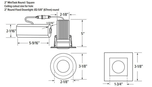 GM Lighting MiniTask 15W 2" LED Trimless Recessed Downlight Selectable CCT