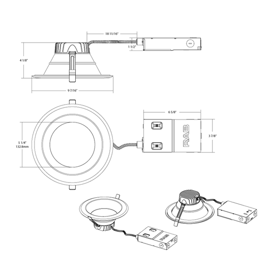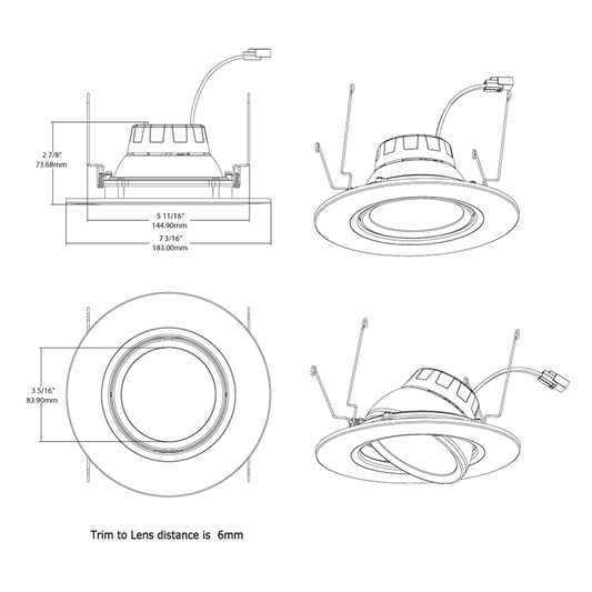 RAB RA6R11 11W LED 6" Round Retrofit Downlight Adjustable Gimbal Selectable CCT